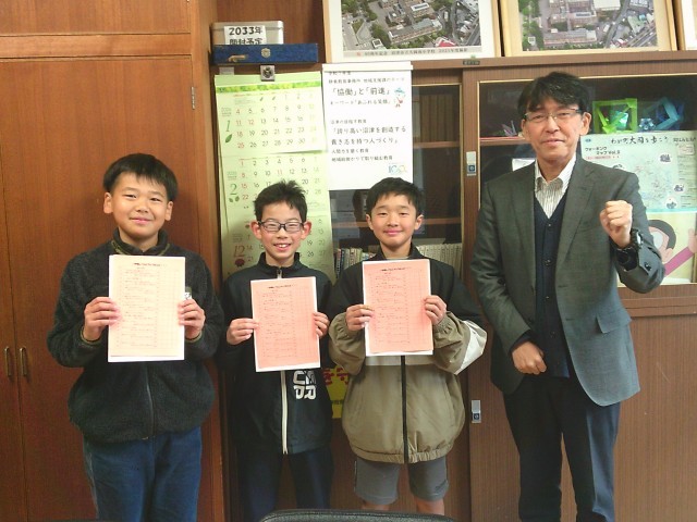 本校では今週はじめから本格的になわとび運動を実施しています。なわとびの上手な6年生が、級をどんどん上げ、いよいよ神様レベルに挑戦します。校長室でオレンジ色の追加分のなわとび用紙を授与しました。さらに頑張ってください。応援しています。