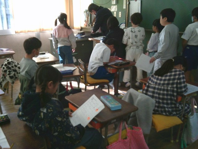 2年生の学習の様子です。3クラスとも落ち着いた雰囲気の中、学習を進めていました。2学期のまとめの学習をしていました。