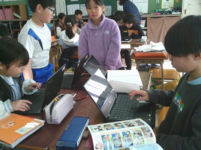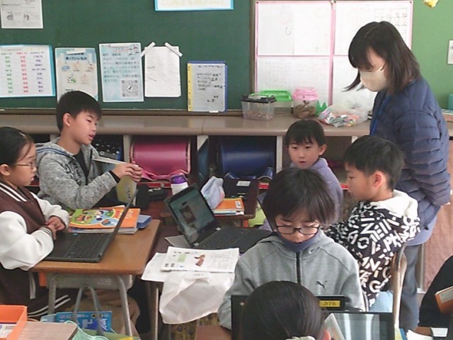 4年生の学習の様子です。両クラスとも主体的に学ぶ姿が見られました。算数では小数を学習し、今日は「小数の秘密」について解き明かしました。社会では調べ学習を行っていました。