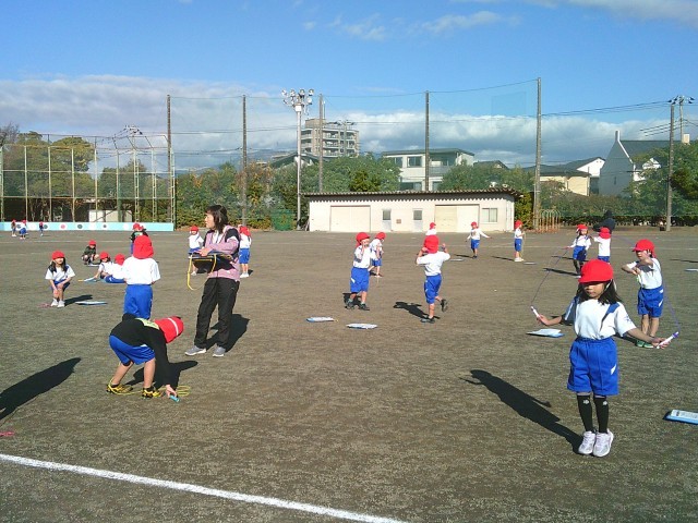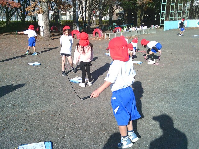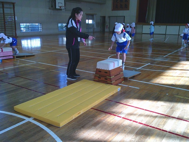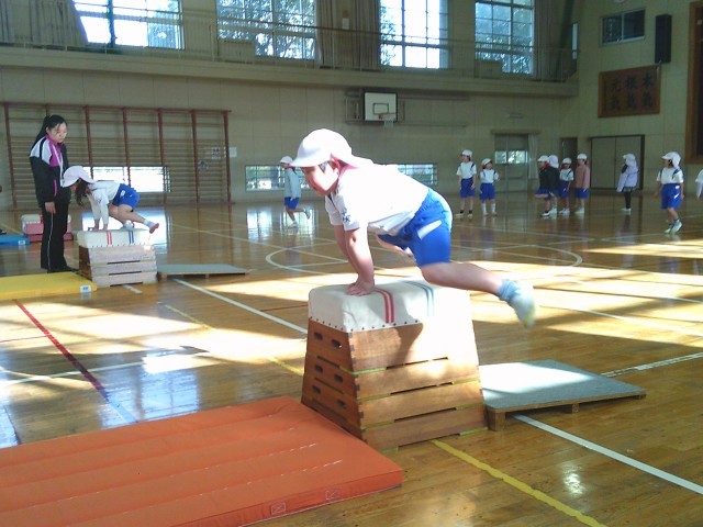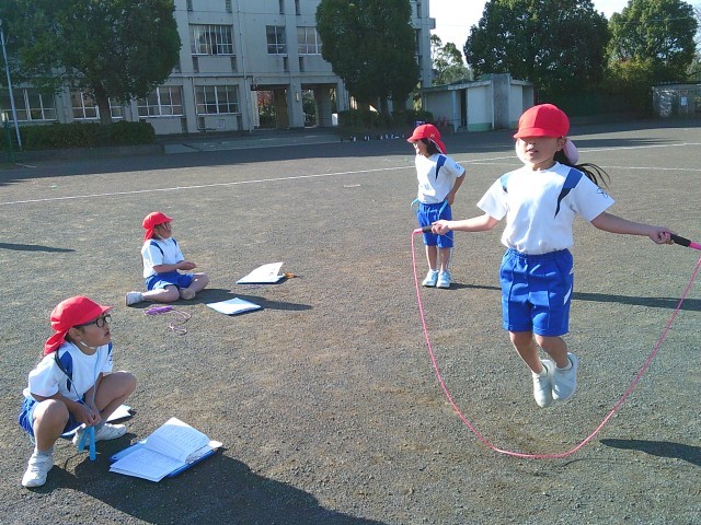 1年生の学習の様子です。3クラスとも体育を行っていました。体育館では跳び箱、グラウンドではなわとびと、みんなよく頑張っていました。