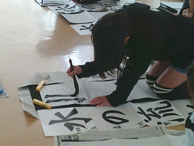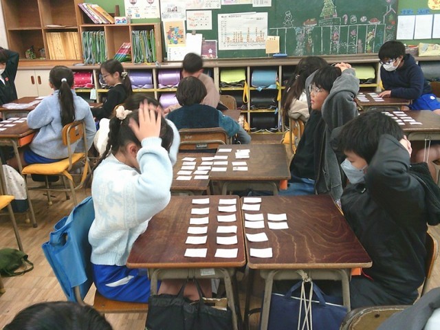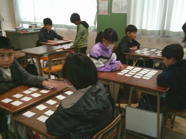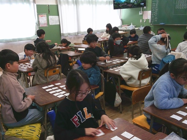4年生の学習の様子です。両クラスとも主体的に学ぶ姿が見られました。国語では、書き初め練習や百人一首を行っていました。