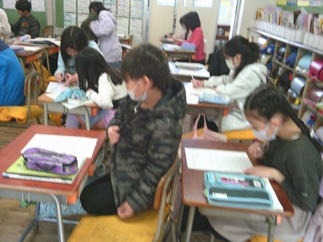 3年生の学習の様子です。両クラスとも集中して学習に取り組んでいました。体育ではミニソフトバレーボールの練習、算数では復習プリントを行っていました。
