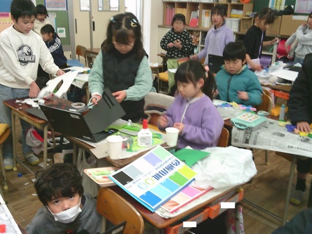 2年生の学習の様子です。3クラスとも落ち着いた雰囲気の中、学習を進めていました。図工ではクリスマス飾り制作など、楽しんで行っていました。