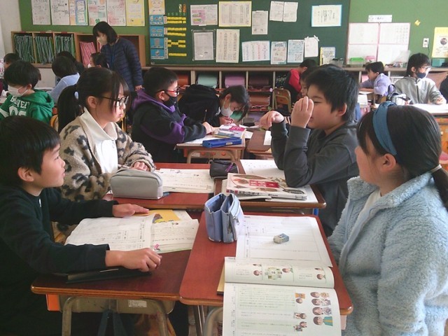 4年生の学習の様子です。両クラスとも主体的に学ぶ姿が見られました。国語ではブックトークをするための準備を進めました。算数は小数の学習で、演習問題を解きながら理解を深めました。