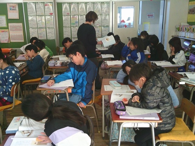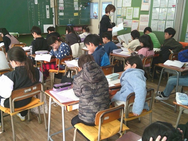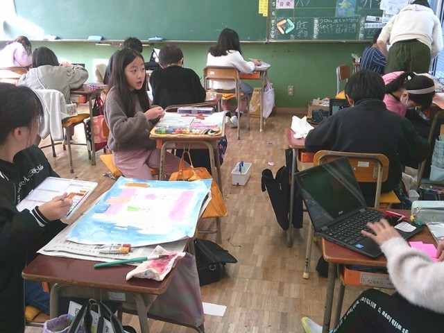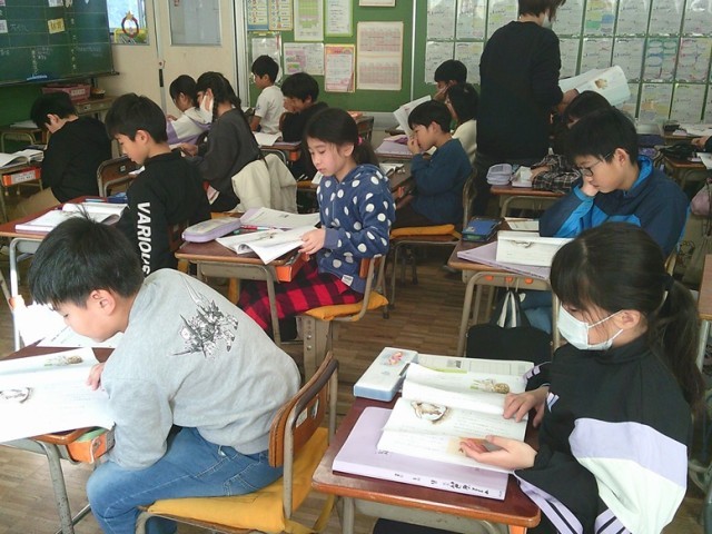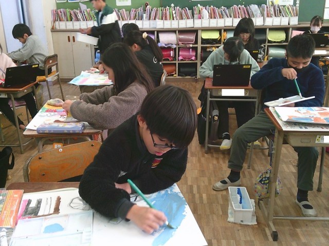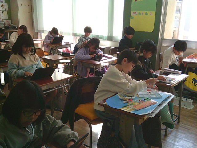 3年生の学習の様子です。両クラスとも2学期のまとめの学習を行っていました。図工作品は仕上げをしていました。