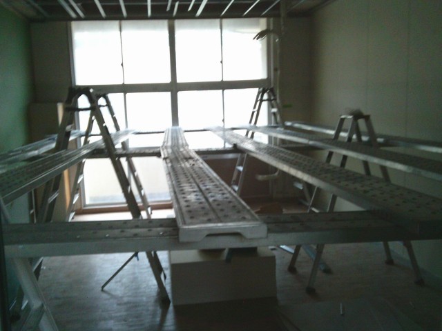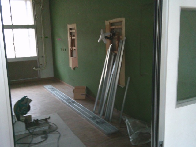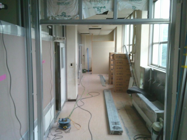 来年度より「ことばの教室」が大岡南小学校内に設置されことになりました。それに伴って北校舎2階の教室を一部改築する工事が行われています。