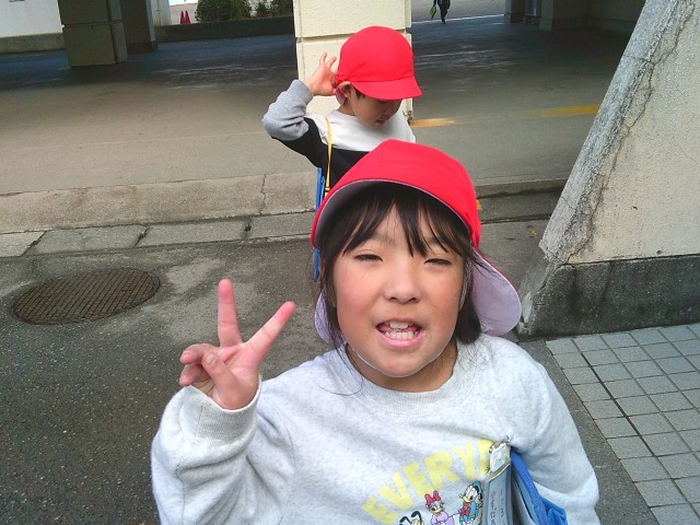 なわとび運動を終えた子たちが、グラウンドから笑顔で戻ってきました。