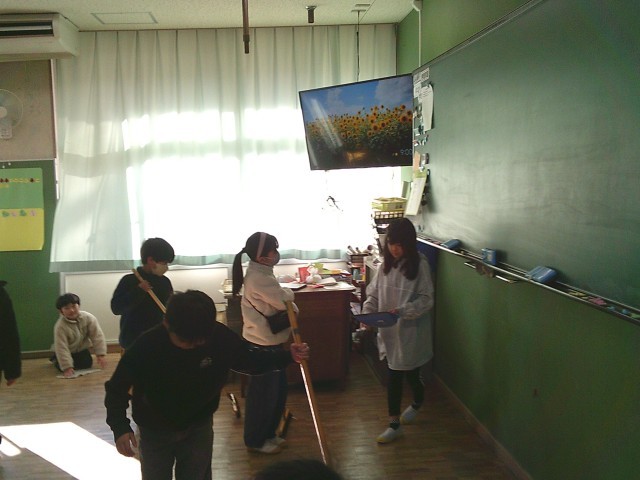 2学期終業式後に、全校で大掃除をしました。これまで使用した箇所を隅々まできれいにしました。