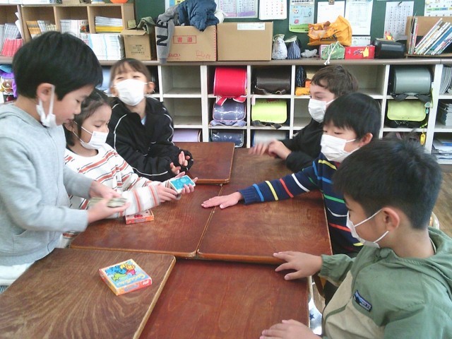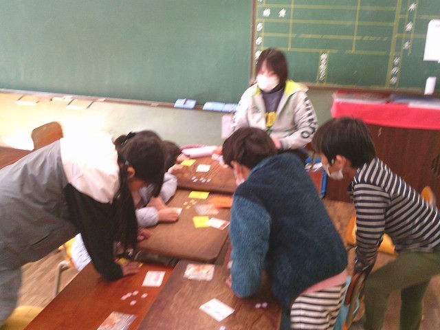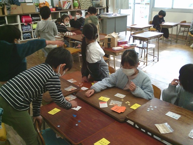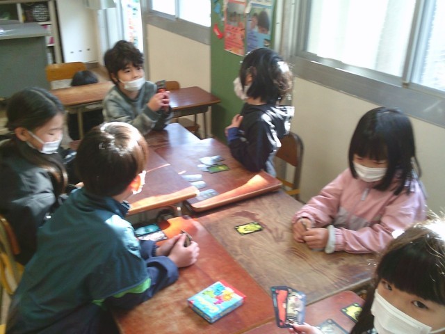 2年生のある学級では、学級活動の時間にお楽しみ会を開催しました。友達と一緒にカードゲームを楽しみました。