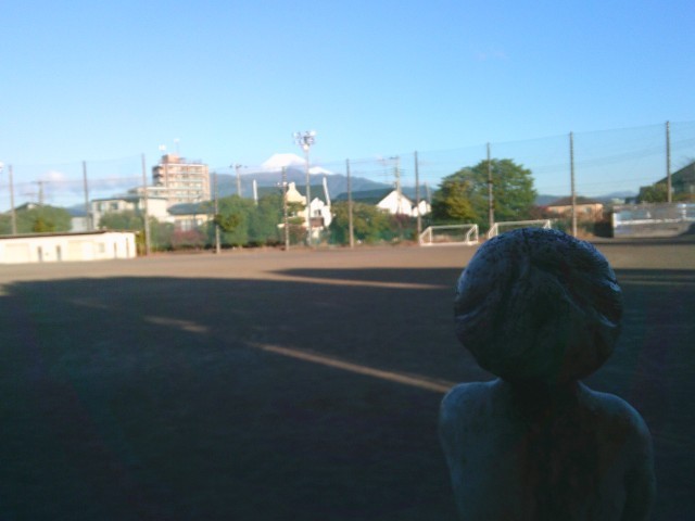 今朝の様子です。朝は一段と冷え込み、グラウンドにある水道の水たまり箇所が凍っていました。