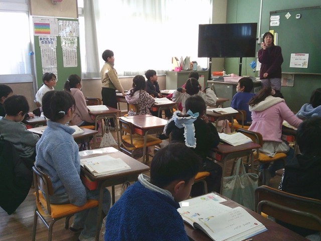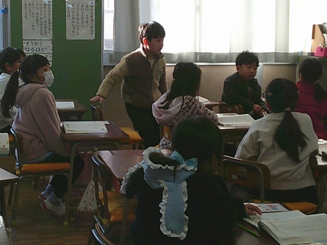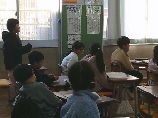 1年生の学習の様子です。3クラスとも落ち着いた雰囲気の中、学習を進めていました。友達の話を聞きながら、自分の意見を再構築して付け加えの発表をしていました。