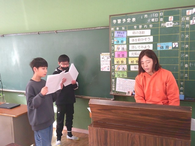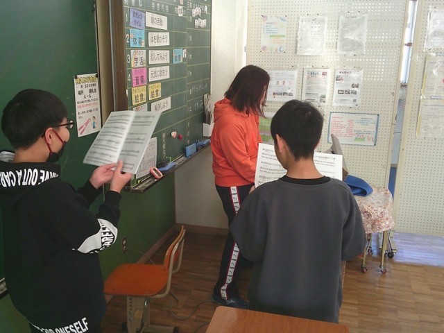 ききょう組の学習の様子です。両クラスで個々の学習課題に沿って活動を進めました。6年生は卒業の歌の練習をしていました。