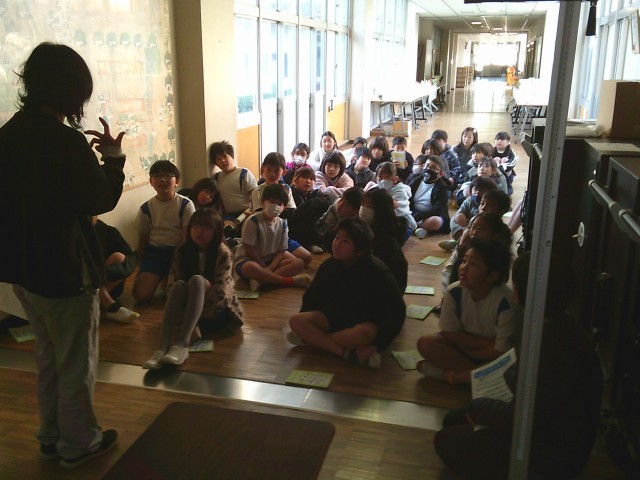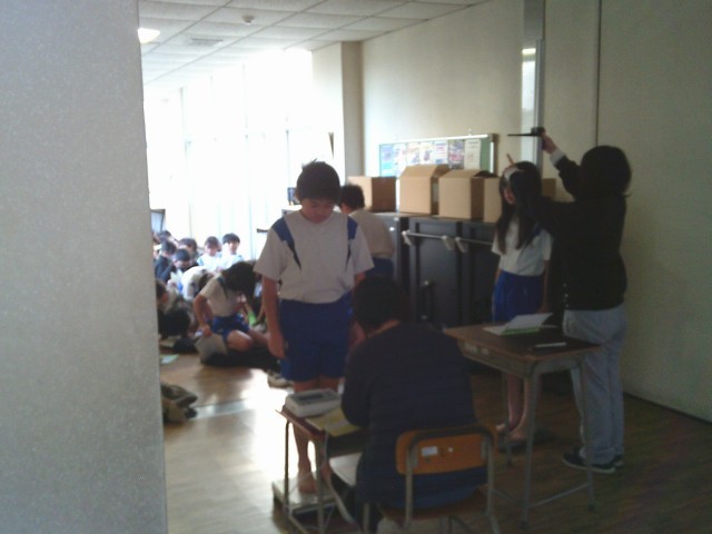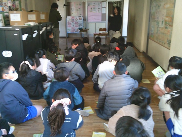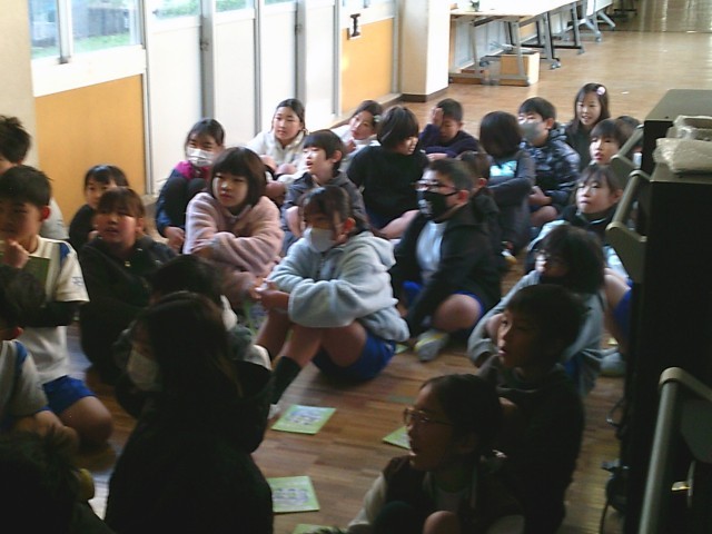 本日、4年生が身体測定をしました。身体測定の前に、養護教諭が講話をしました。