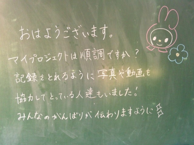 学級担任が黒板メッセージを用意して、子供たちの登校を待ちます。