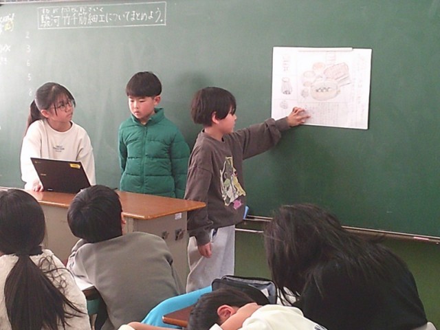 4年生の学習の様子です。両クラスとも主体的に学ぶ姿が見られました。英語でカードゲームをしたり、社会で学習まとめをプレゼンテーションしたりしていました。