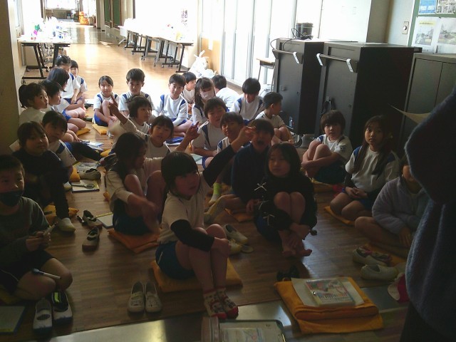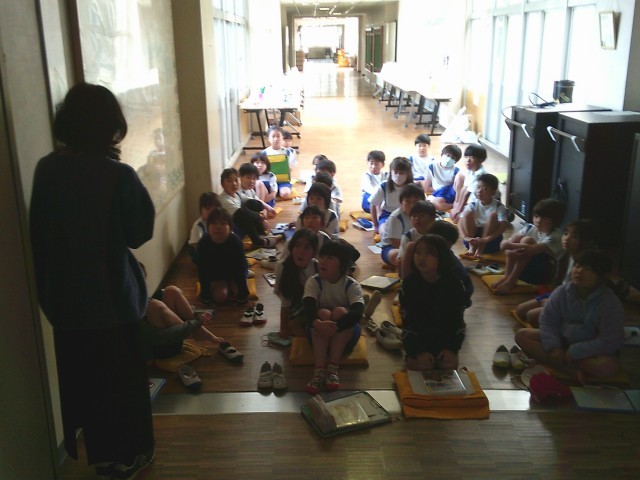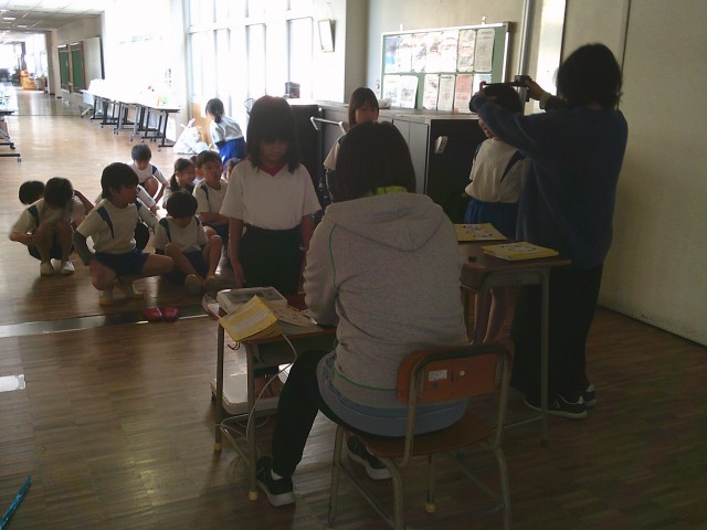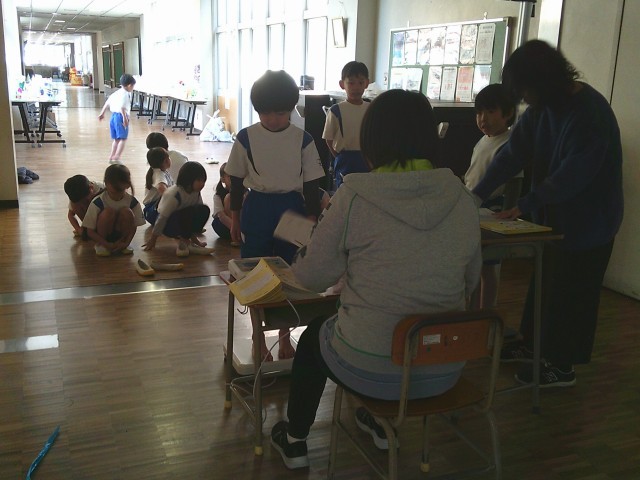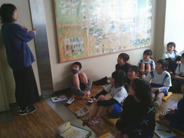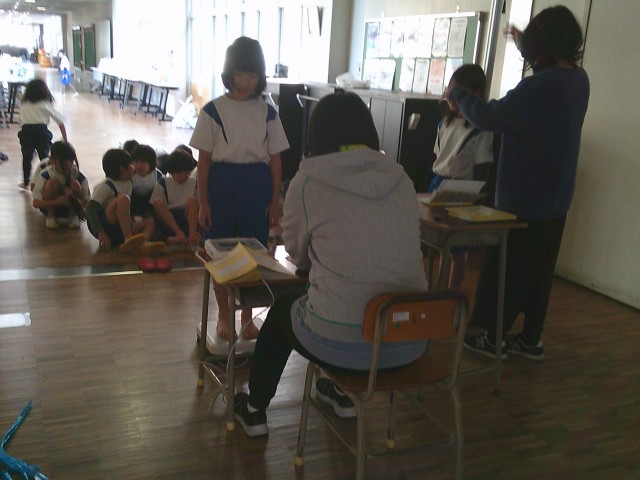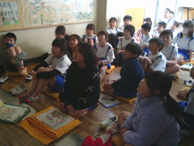 本日、2年生が身体測定をしました。身体測定の前に、養護教諭が講話をしました。