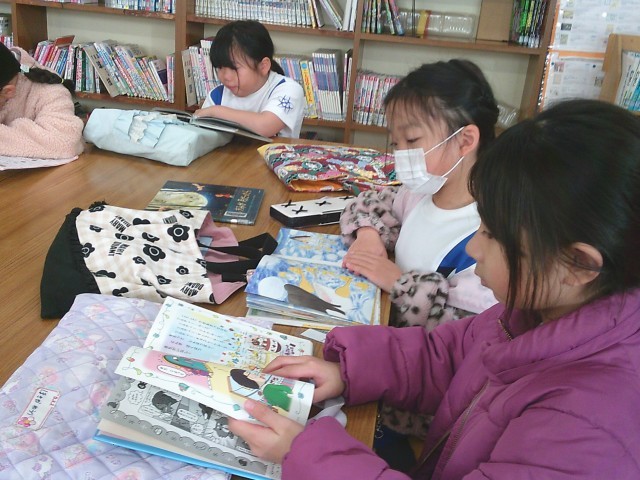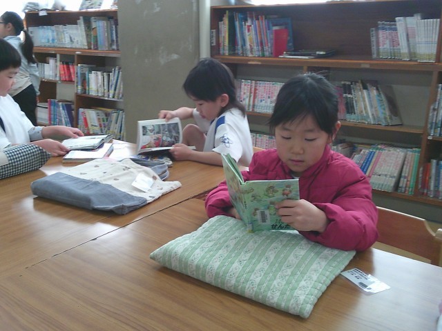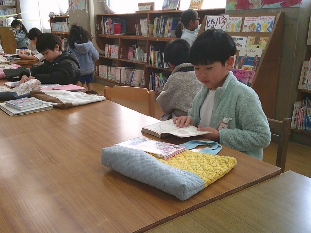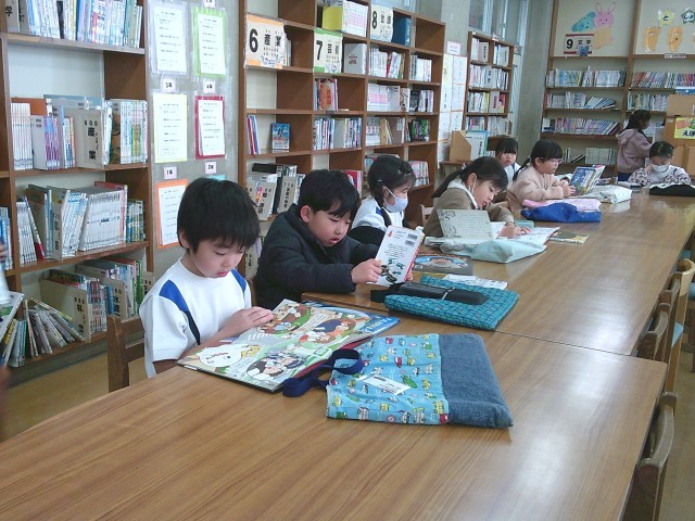 1年生が学校図書館を利用していました。それぞれが興味のある本をじっくりと読んでいました。