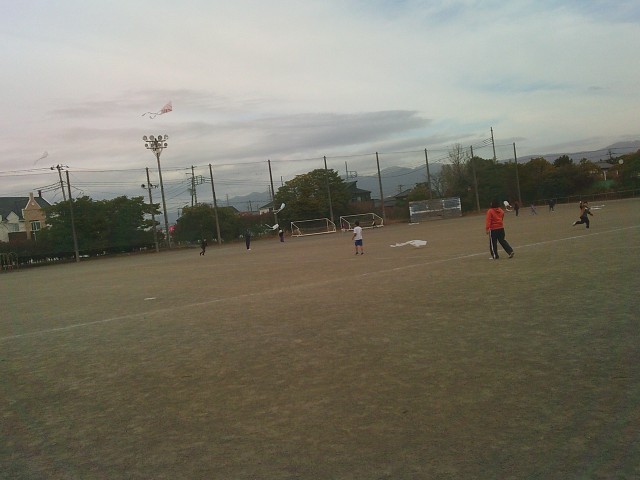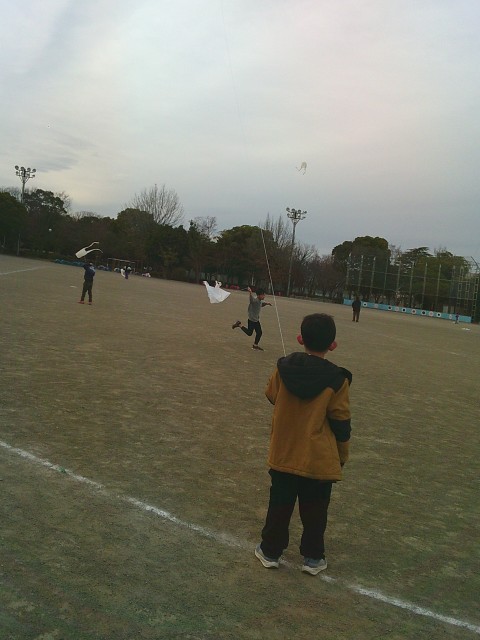 5時間目に、ききょう組はグラウンドで手作りのビニールだこを使って、たこあげをしました。たこが高く上がると子供たちは大喜びでした。