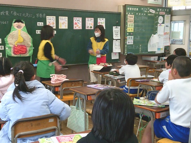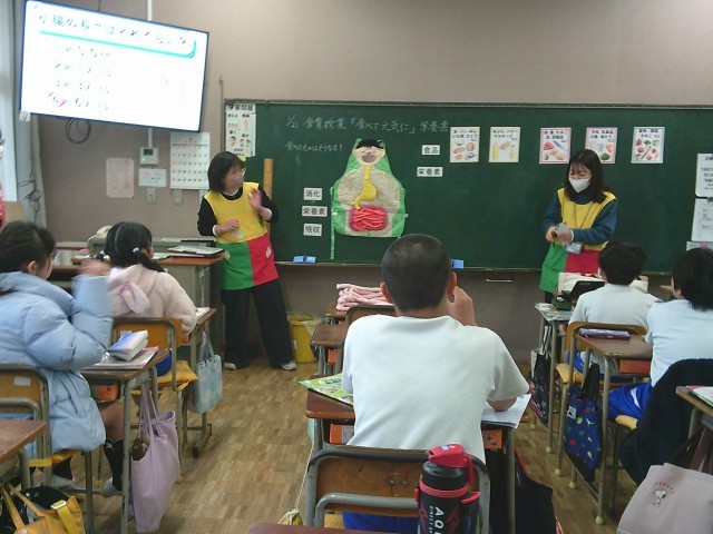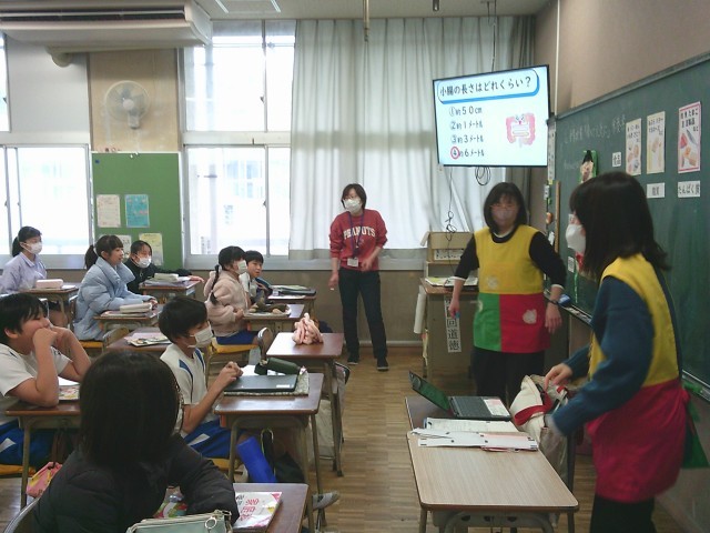 5年生は3クラスで食育授業を行いました。原小学校の栄養教諭と本校の栄養士をゲストティーチャーとして招き、「食べて元気に 栄養素」というテーマで学習を進めました。