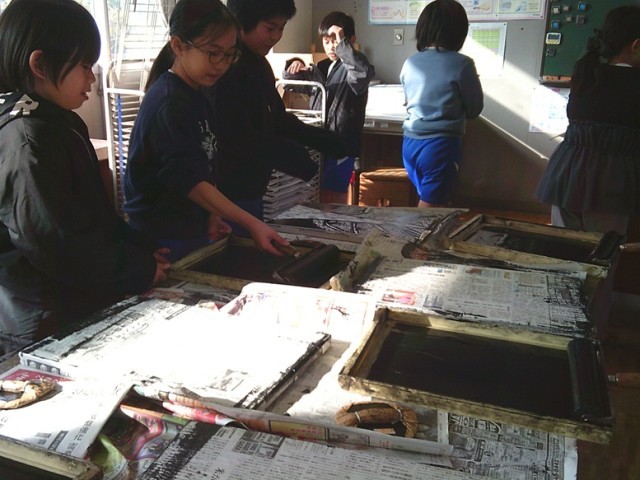 4年生の学習の様子です。両クラスとも意欲的に学びを深めました。図工では版画作品が仕上がってきました。社会では単元テストを行い、学習定着の確認をしました。