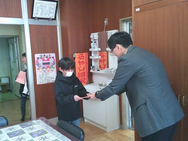 12月からなわとび運動を実施しています。なわとびの上手な子たちが、級をどんどん上げ、いよいよ神様レベルに挑戦します。校長室でオレンジ色の追加分のなわとび用紙を授与しました。さらに頑張ってください。応援しています。