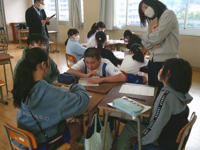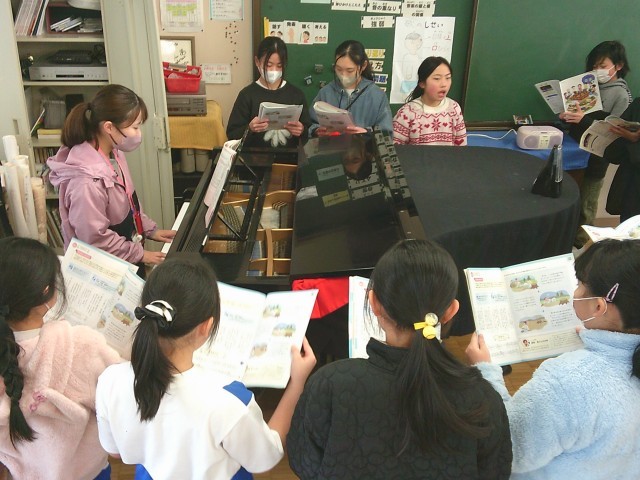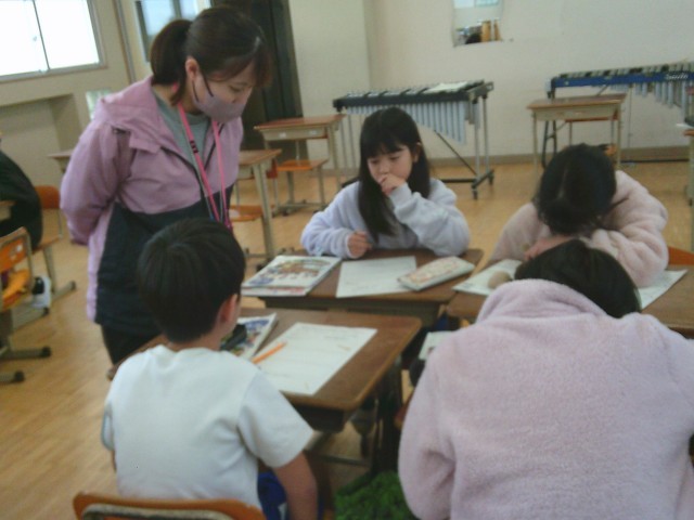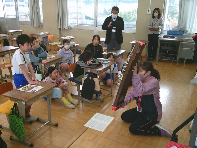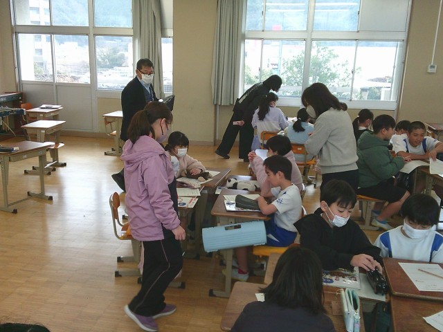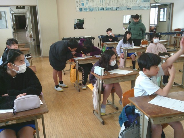 5年生は音楽で「春の海(鑑賞)」という教材の学習を進めています。今日は旋律や音の重なりに気を付けながら聴き、気付いたことについて意見交換をしました。なお、この時間は教員の指導力向上を目的として、数名の教員が授業を参観しました。