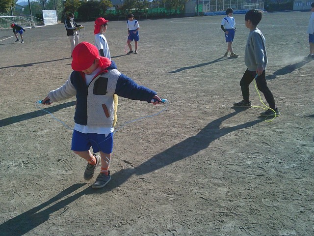 ききょう組の学習の様子です。両クラスで合同体育を行い、なわとびとボール運動を楽しみました。