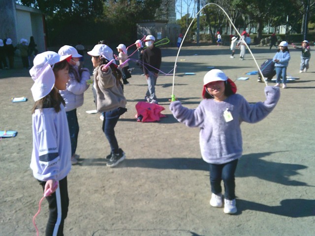 なわとび運動は最終週となりました。休み時間にはグラウンドに出て、みんなで「なわとび運動」に取り組んでいました。
