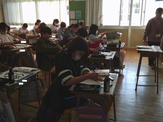 5年生の学習の様子です。3クラスとも集中して学習に取り組んでいました。理科では電磁石の働きについて話し合いながら理解を深めています。書写の時間では毛筆を行っていました。