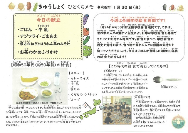 1月30日(金)今日の給食