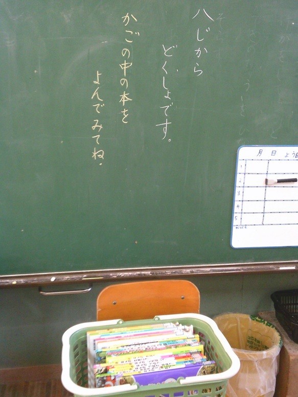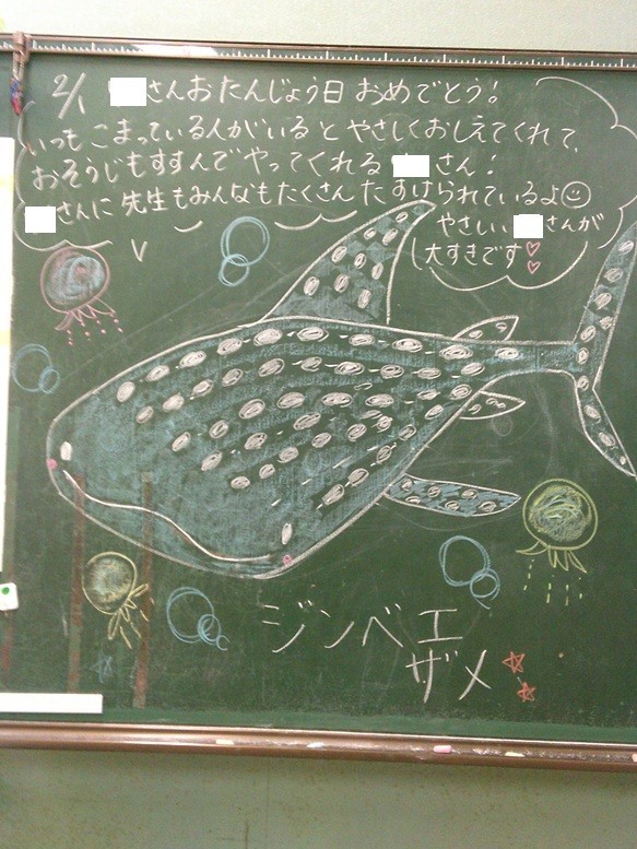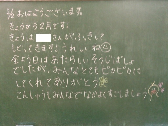 学級担任が黒板メッセージを用意して、子供たちの登校を待ちます。
