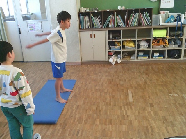 ききょう組の学習の様子です。両クラスとも元気に生活をしています。クロームブックを使っての学習や室内での立ち幅跳び練習など、意欲的に活動していました。