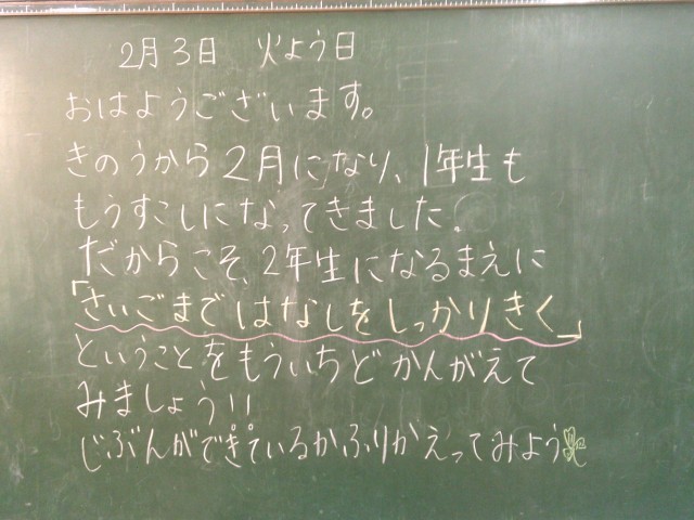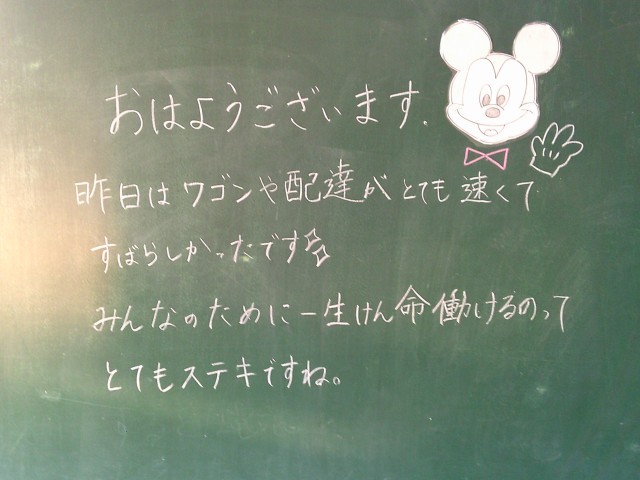 学級担任が黒板メッセージを用意して、子供たちの登校を待ちます。