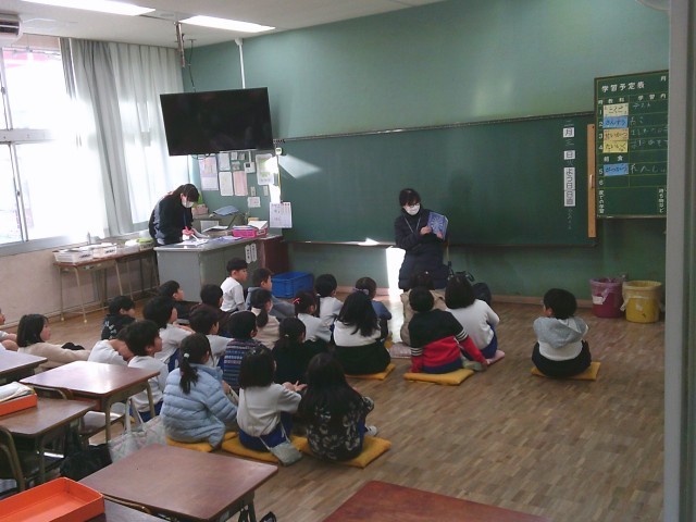 本日、読み聞かせボランティア「おはなしやさん」の皆様が来校され、子供たちへの本の読み聞かせを行ってくださいました。1年から3年までの子供たちが本の世界に引き込まれました。ボランティアの皆様、ありがとうございました。次回もぜひよろしくお願いします。