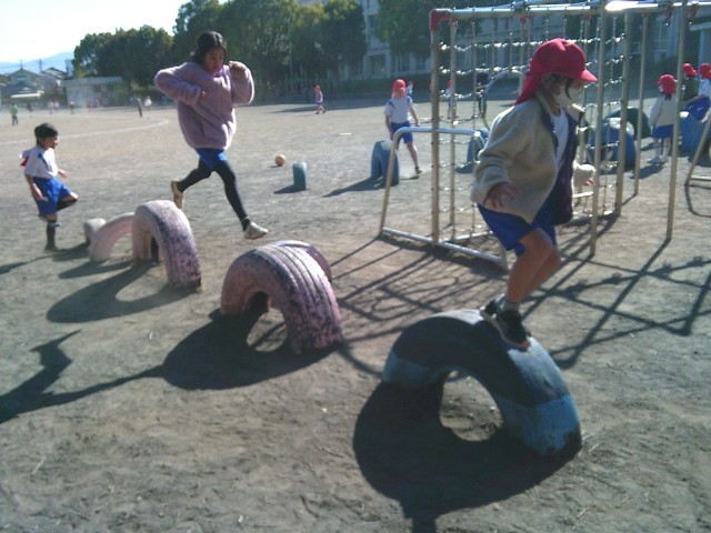休み時間の様子です。グラウンドでは子供たちが元気に遊んでいました。