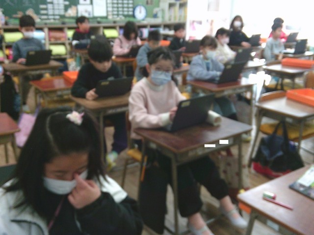 2年生の学習の様子です。どちらのクラスとも元気に生活しています。国語では新出漢字の練習をしていました。またクロームブックを使って意欲的に活動していました。