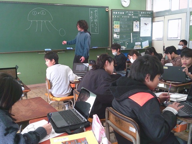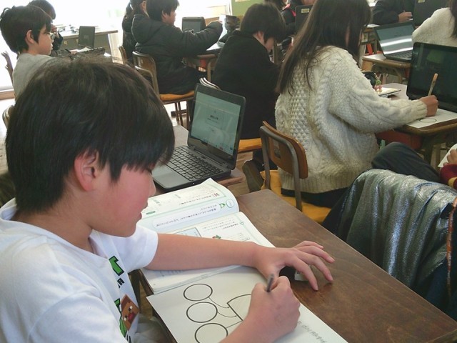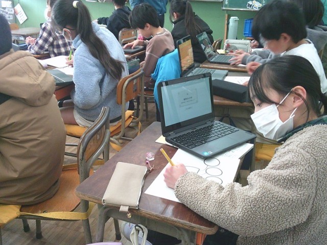 4年生の学習の様子です。両クラスとも集中して学習に取り組んでいました。国語では思考ツール「クラゲ・チャート」を使って、たくさんの意見を出していました。