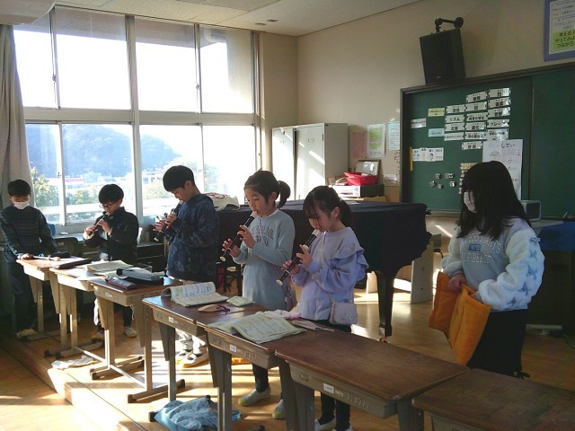 3年生の学習の様子です。両クラスとも学習発表会に向けて準備を進めています。音楽ではグループ合奏を楽しんでいました。