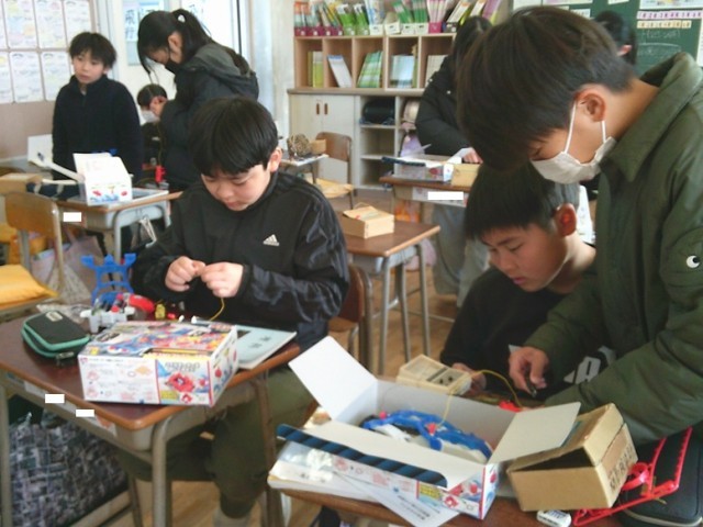 5年生の学習の様子です。3クラスとも集中して学習に取り組んでいました。理科では電磁石の性質を学ぶために、補助教材を使って理解を深めています。