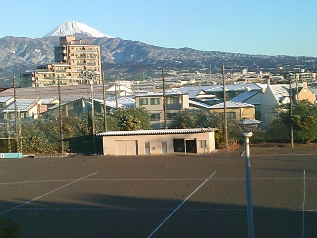 今朝の様子です。昨日の大雪で富士山、愛鷹山は元より学校近隣住宅の屋上にも雪が降り積もっています。