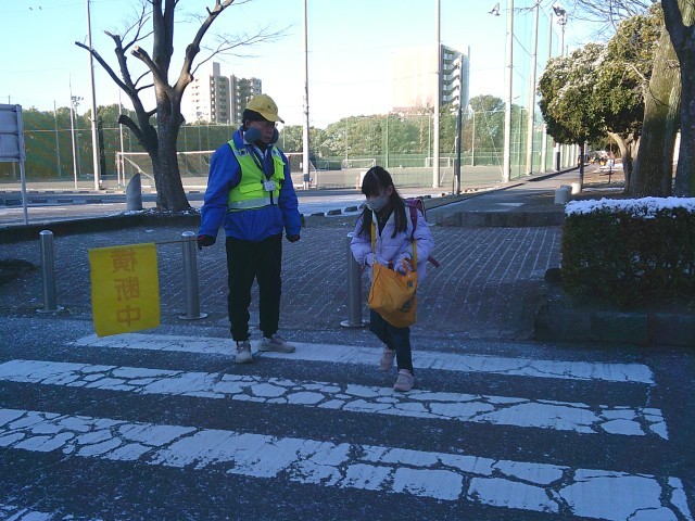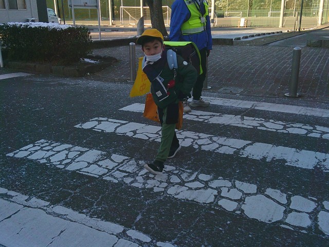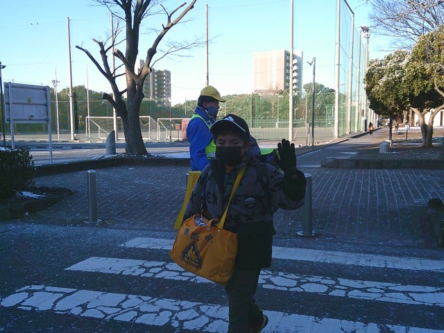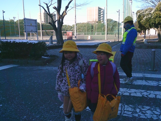 朝の寒さの中でも子供たちが元気に登校してきました。登校してきた子供たちが、「家で雪だるま、作ったよ。」「家族で雪合戦をしたよ。」など、嬉しそうに話をしてくれました。