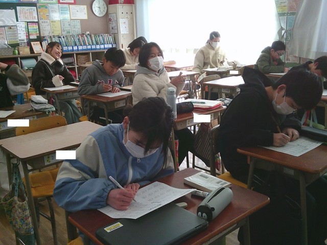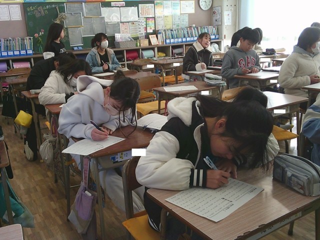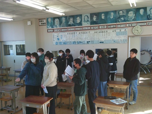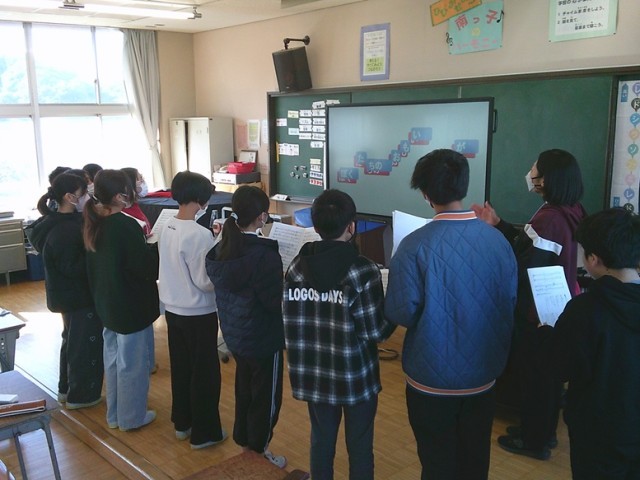 6年生の学習の様子です。両クラスとも卒業に向けて、音楽で合唱練習をしたり、算数の小学校まとめの演習問題に取り組んだりしていました。