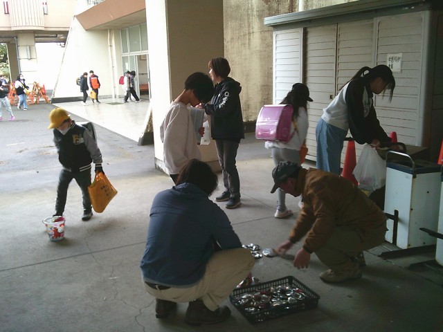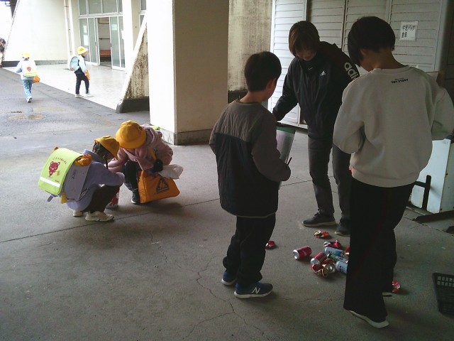 思いやり委員会の児童が空き缶回収を行っていました。今日も多くの子が自宅から空き缶を持ってきてくれました。ありがとうございました。