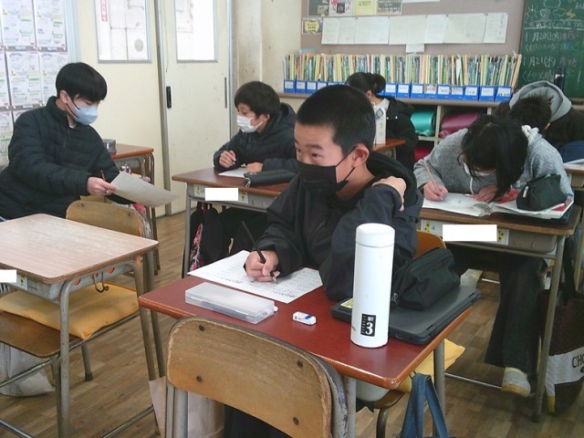 6年生の学習の様子です。算数では6年間のまとめとして、演習問題に取り組んでいました。