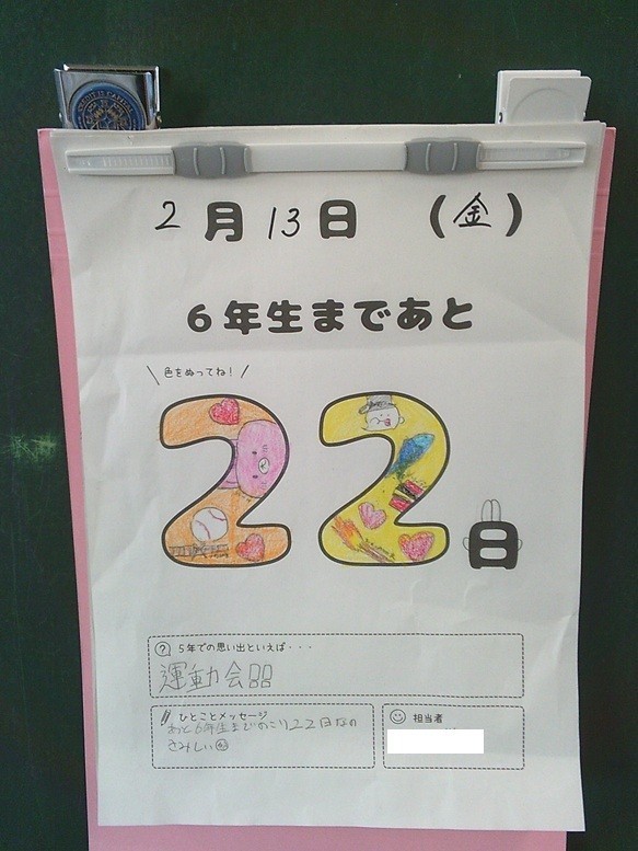 各クラスにカウントダウンカレンダーが飾ってあります。残りの授業日数も少なくなってきました。