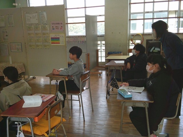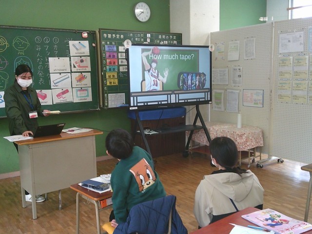 ききょう組の学習の様子です。英語の時間には、ALTと一緒に英語を使っての数当てゲームを楽しんでいました。