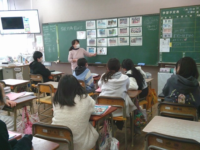 6年生の学習の様子です。両クラスとも主体的に学ぶ姿が見られました。算数や英語などの教科では、中学生の自分を思い描きながら学習を行っています。