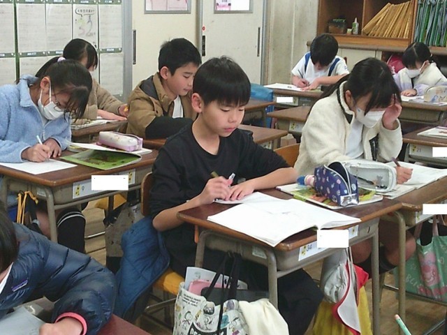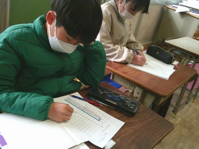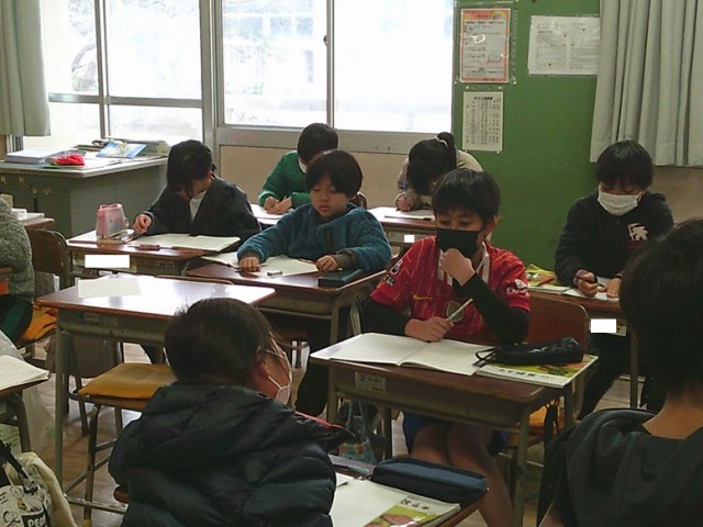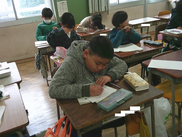 4年生の学習の様子です。算数では分数について、演習問題を解きながら理解を深めています。