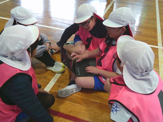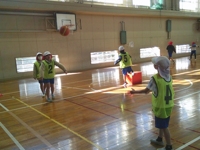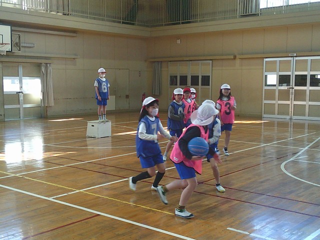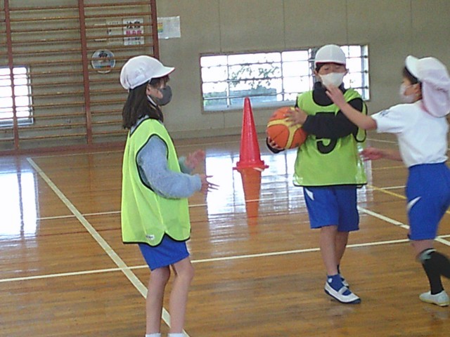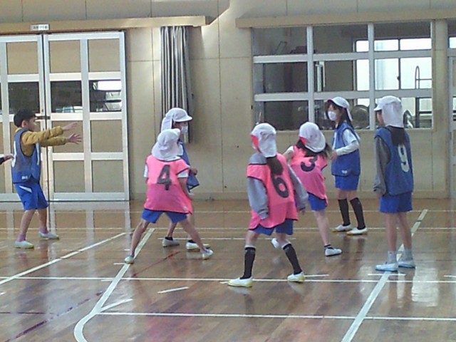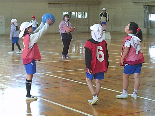 3年生は体育で「ポートボール」行いました。これまでの学習をもとにチームで作戦を立てて実際に試合をしました。なお、この時間は教員の指導力向上を目的として、沼津市教職員研修センターより講師を招聘し、授業を参観していただきました。