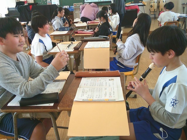 2月18日(水)校内研究授業(5年・音楽) 公開日 2026/02/18 更新日 2026/02/18 5年生 +4 5年生は音楽で「思いを表現に生かそう」という教材を学習しました。「威風堂々(器楽)」について、強弱を意識しながらリコーダーで練習に励みました。なお、この時間は教員の指導力向上を目的として、沼津市教職員研修センターより講師を招聘し、授業を参観していただきました。 いいね(0) 5年生